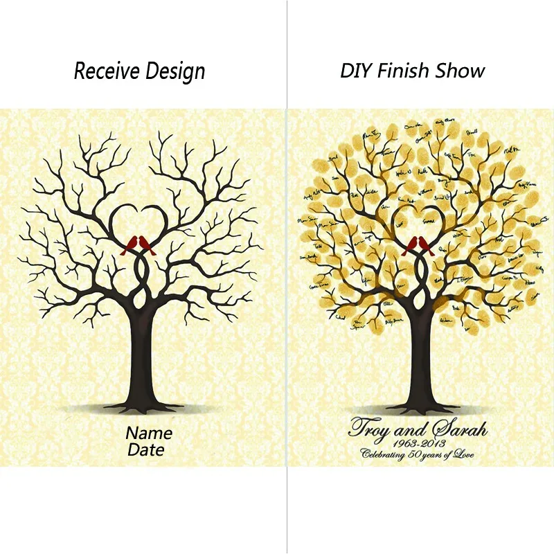 Livro de Convidados do casamento Personalizado Presentes De Casamento para Convidados Lovebird Impressão Digital Pintura Da Árvore De Decorações Do Partido livre d’or mariage